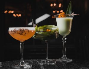 Son Tinh Nep infused Pandan, Orange Juice, Homemade Youndrice Syrup, Malibu, Lime Juice